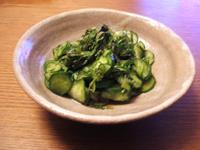 自前のらっきょ、きゅうりの漬物土生姜あえ、