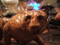 ガラステーブルを支えるのは、木彫のヒョウ!